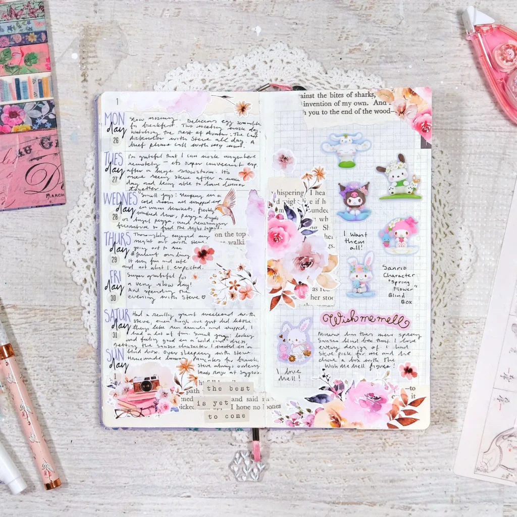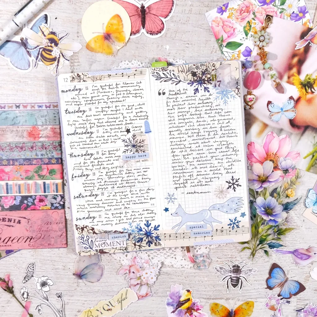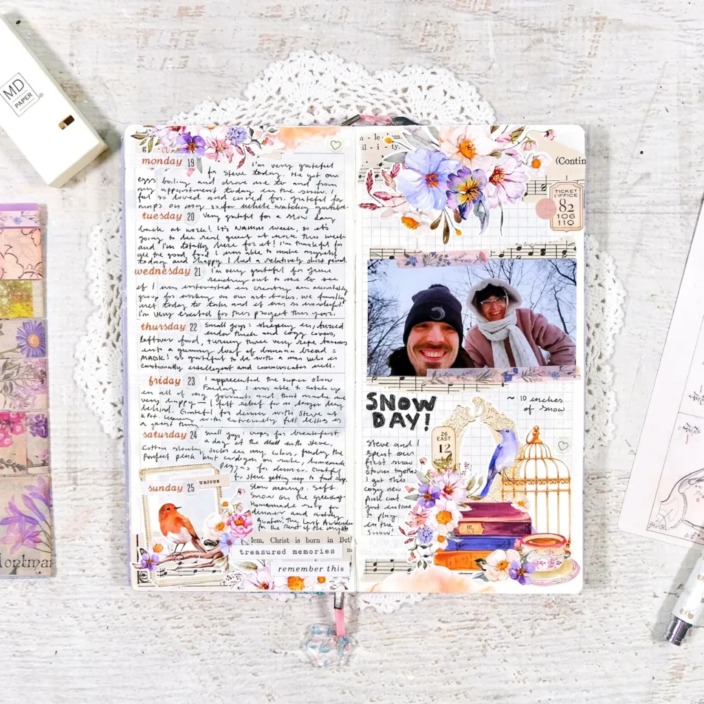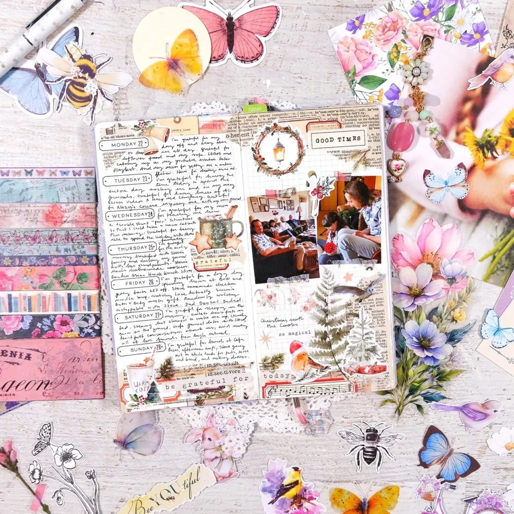 I wanted to share the pages of my Gratitude Joy Journal that I’ve been keeping in a Hobonichi Weeks this year. I’m using a 2025 Yumi Kitagishi weeks and have been redating the pages with my Cocoa Daisy kits. It’s been working out fantastically! The Cocoa Daisy monthly calendar stickers are amazing and makes it super easy for me to redate the monthly pages too. I’ve also been utilizing a lot of the decorative stickers that I’ve been hoarding for years and it’s just been really fun to decorate and fill up these pages.